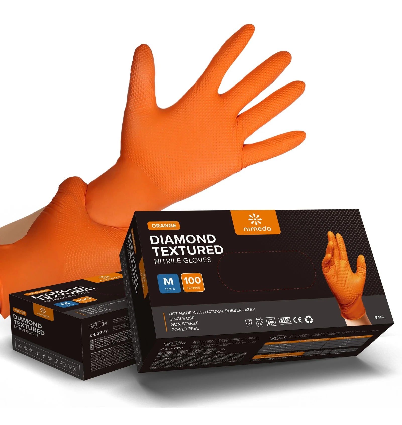 NIMEDA® Nitrilhandschuhe - Orange 2-3 x Dicker mit Diamant Textur